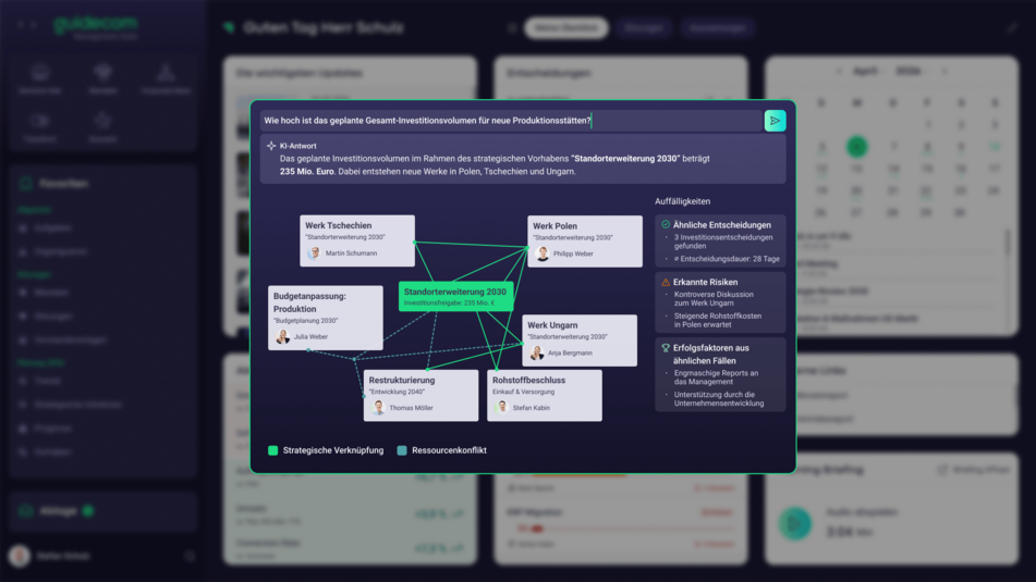 KI unterstützt die schnelle Erstellung fundierter Entscheidungsgrundlagen, vernetzt relevantes Wissen und liefert automatisch die passenden Informationen und Zusammenhänge.