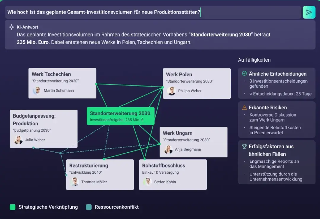 Bündelt und priorisiert relevante Informationen als Entscheidungsgrundlage.